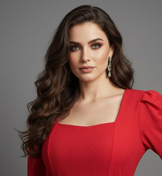 AJVIE Women’s Sophisticated Long Sleeve Party Wear One Piece – Red