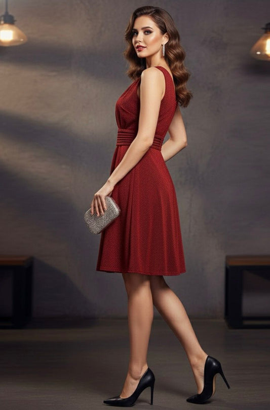 AJVIE Ruby Charm Sleeveless Fit & Flare Dress with Waist Detailing